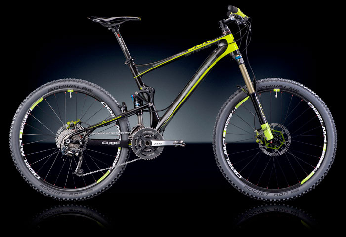 Помимо красно-бело-голубой расцветки также будут доступны еще две зеленая с черным и черная с красным. Что характерно, Cube выделяют каждую расцветку как отдельную модель: Teamline, Greenline и Blackline соответственно. И, как видно по фотографиям, модели отличаются не только цветом, но и частично навеской: на Blackline вместо системы и заднего переключателя XTR установлена система Noir и задник X.0, а также используется вилка Fox вместо Magura Durin.