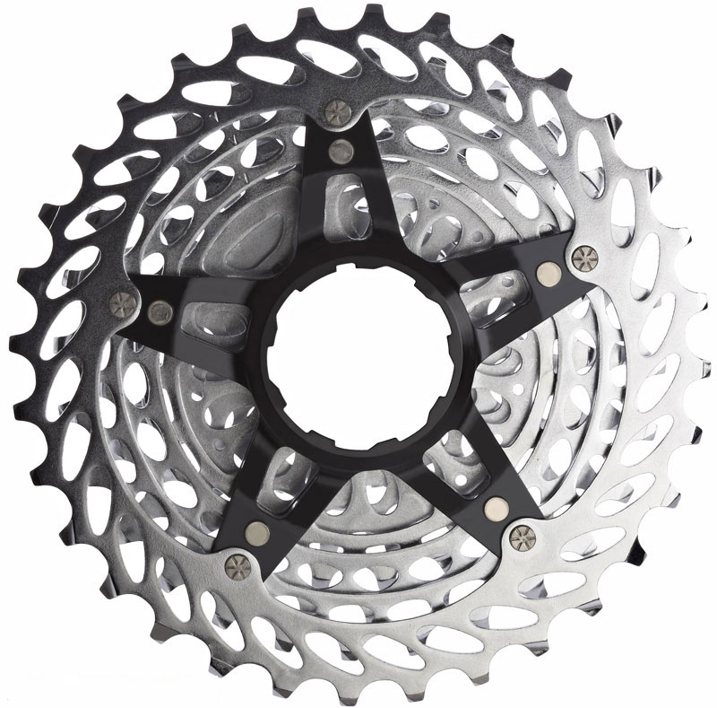 Внешний вид девайса напоминает хитрофрезерованые кассеты группы RED или новую XG999 с технологией X-Dome, но эта схожесть обманчива: все звезды сделаны по традиционной технологии, большая звезда не алюминиевая, а стальная, также как и остальные, и вместе с тремя соседними закреплена на алюминиевом пауке. Такой конструктив не мог не сказаться на весе кассеты, который равен 299 граммам.