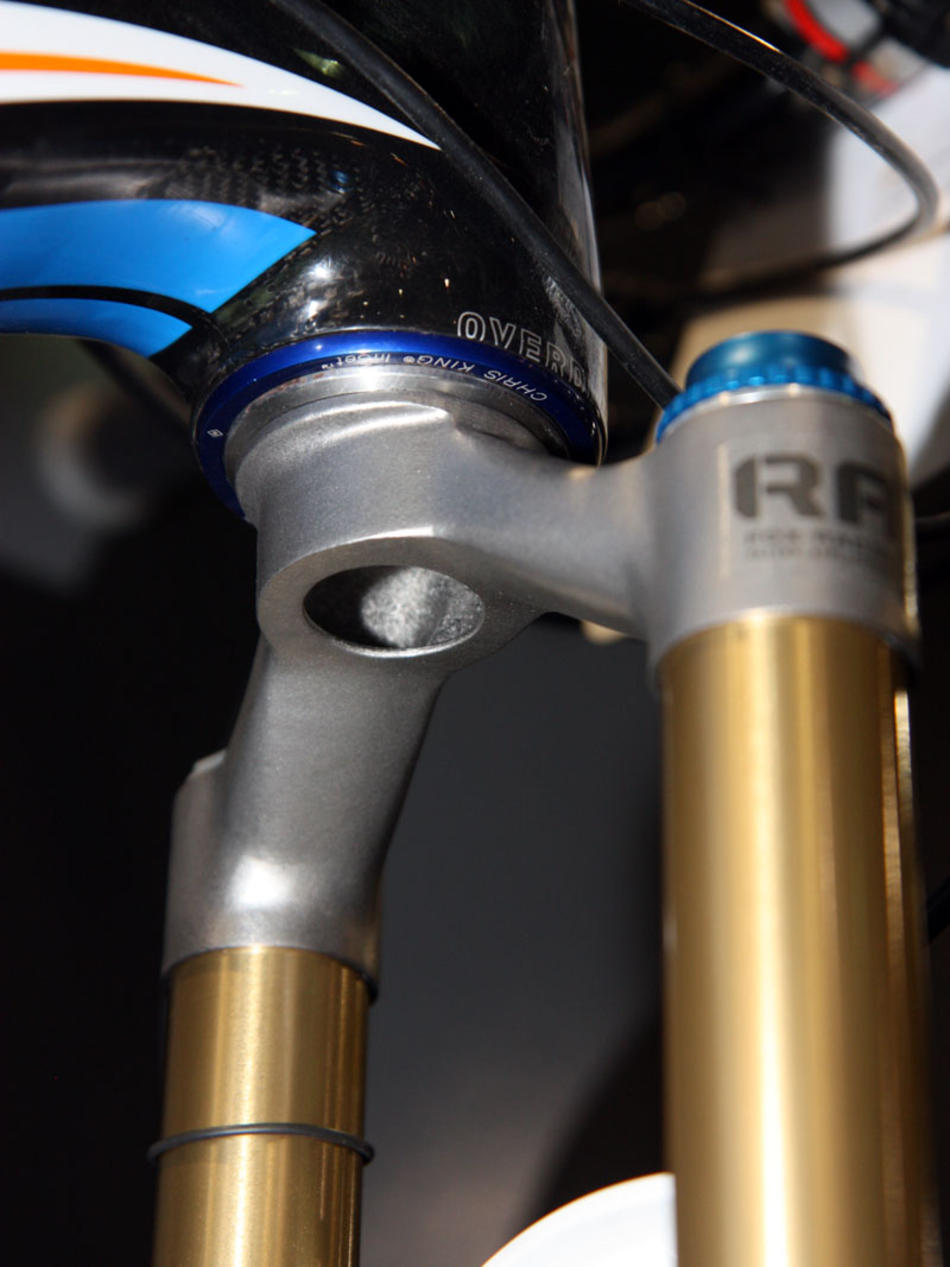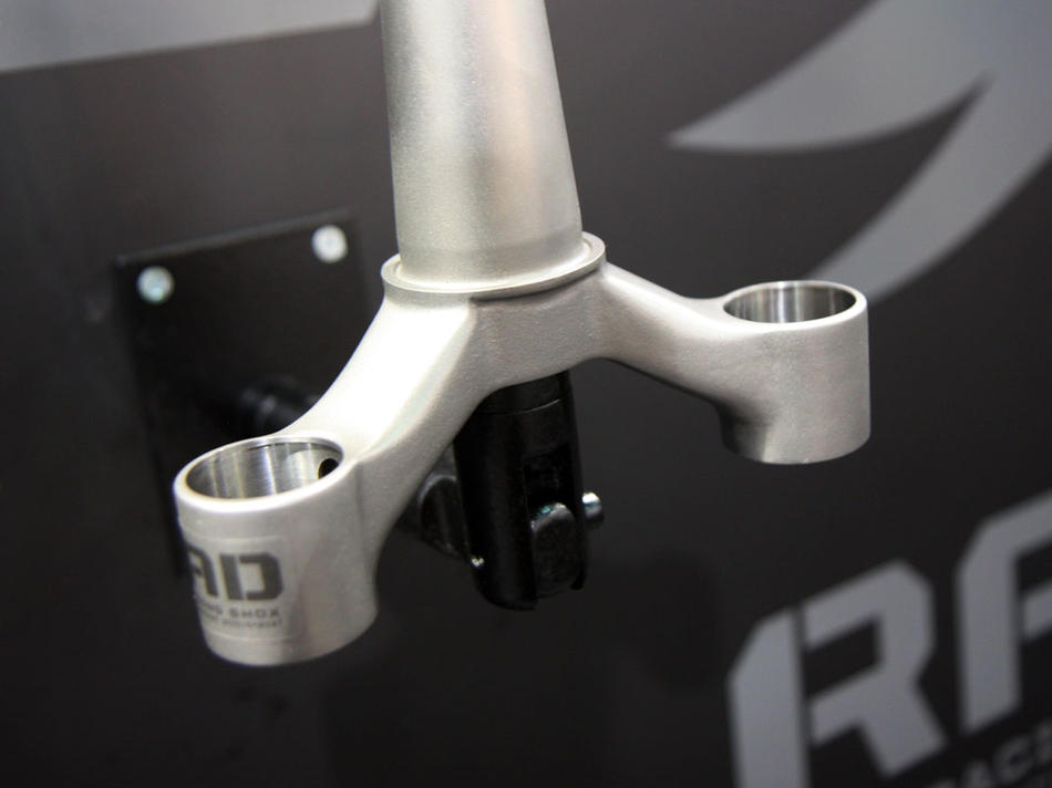 Интересно, что инженеры Fox предпочли изготовить корону RAD (Racing Applications Development) методом литья, а не ковки. Почему не карбон? По заявлению представителя компании Fox, опыта работы с титаном у них просто больше.