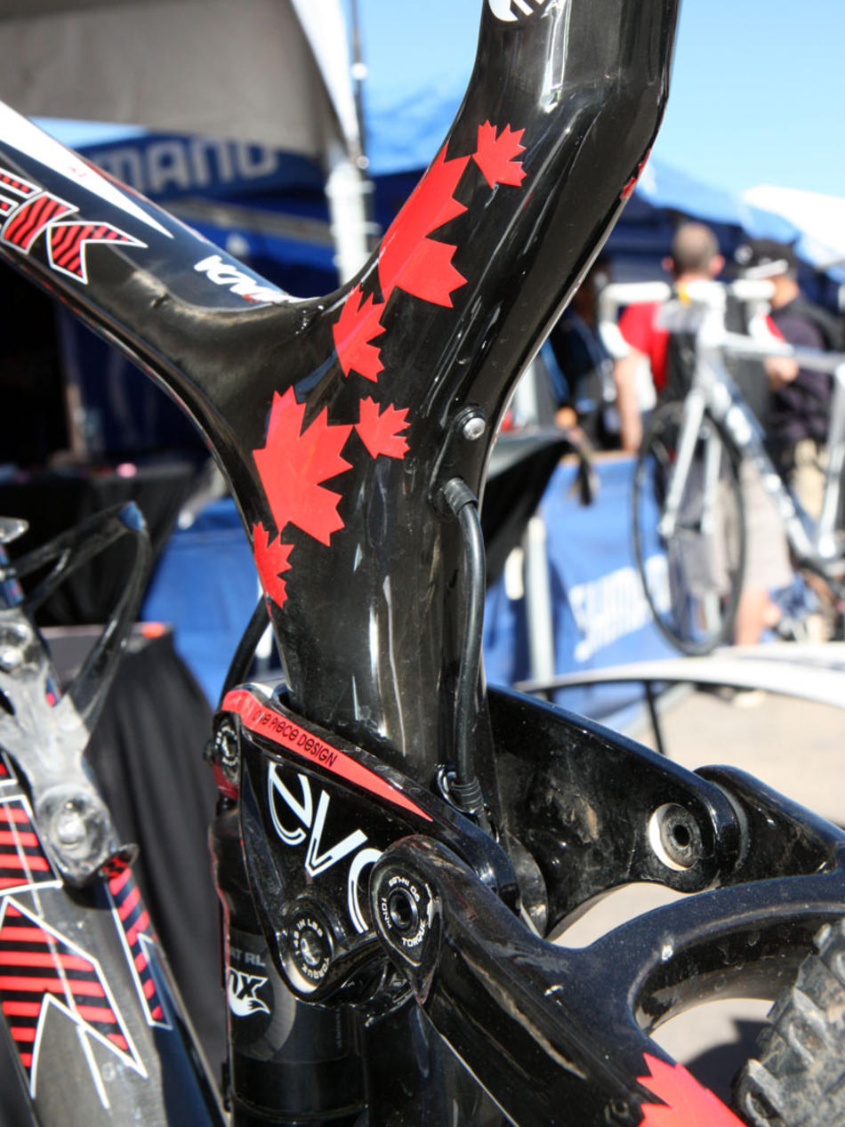 На Top Fuel 2011-го года будет использоваться внутренняя проводка тросов. Это сделано не только из эстетических соображений, но и для повышения грязезащиты. Что характерно, внутрь рамы спрятаны не только тросики переднего и заднего переключателей, но также и локаут амортизатора и гидролиния заднего тормоза. Последнее вряд ли сильно порадует механиков, т.к. для замены тормоза придется отделять гидролинию от калипера или ручки, и затем прокачивать.