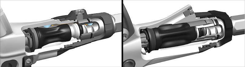 Слева — старая система, справа — новая. Как видно из картинок, порт для прокачки переехал в основную часть ручки, что дало возможность прогонять дот через всю ручку без лишнего уплотнителя, который стоял на пути в прошлом варианте. Утверждается также, что новая система лучше защищена от попадания воздуха.