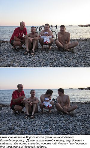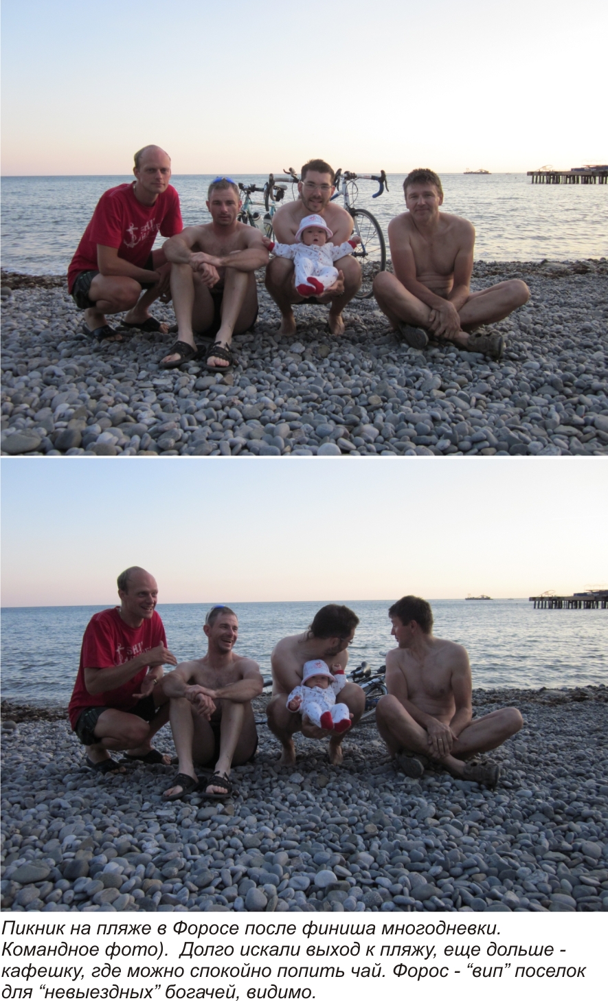 После финиша мы поехали в Форос купаться и есть шашлык. Вова с Мишей и Витей вечером уехали в Питер, а мы направились в Ялту.