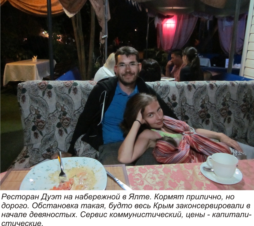 Итак, нас осталось трое взрослых я, Ника, Катя и карапуз. Впереди у нас маячил бессрочный отпуск. Задачи перед нами стоят сложные, но выполнимые: на оставшиеся деньги провести в Крыму как можно больше времени и, желательно, продуктивно.
