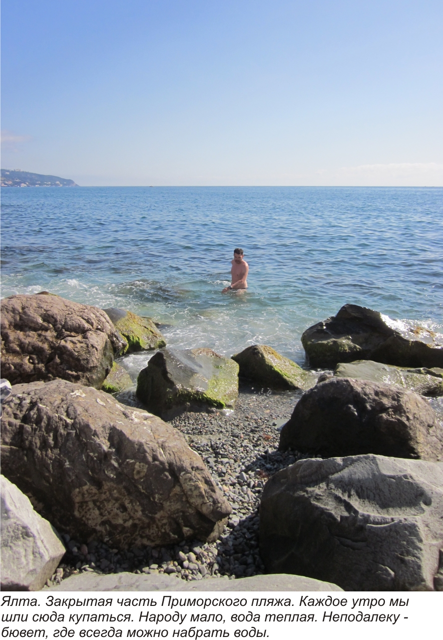 Пляжи в Ялте либо всегда заполнены купальщиками, либо труднодоступны. Мы ходили на закрытую часть Примосркого пляжа. Еще можно ездить в Ливадию там народу поменьше.