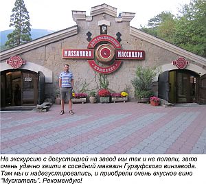 За едой лучше ездить в Малореченск: там приятный рыночек и несколько хороших магазинов. А вино и чачу можно купить у местных. Мы покупали у татарина, сына хозяйки пансионата Майи у нее единственной чача желтоватого цвета. Качество высочайшее!