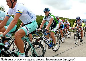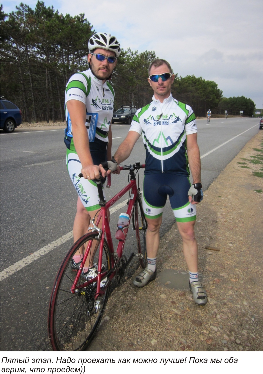 Четвертый этап. Опять надо ехать на старт через подьем. Мы с Витей решили ехать сразу в машине, без изматывающей разминки. На стартовой линии (о чудо!) мы бодры и веселы, в ногах нет этих «разминочных» горных километров. Ляпота!