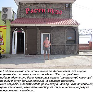 Начался настоящий курортный отдых: проснулись потянулись на пляж. Купаться и загорать. Потом обед и опять на пляж. Вода изумительная, кое-где на длиннющем пляжу совершать спа-процедуры можно даже голышом. Но такой режим нас настолько обленил, что культурно мы обогатились лишь один раз, выехав в Малореченск в Музей Катастроф на водах. Еще один раз ходили гулять на ближайшее озеро. И на обратном пути накупили крепкого и не очень алкоголя с дегустацией.