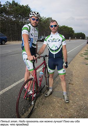 Тренировки в Рыбачьем были самыми тяжелыми. Два раза я ездил в сторону Судака и один раз в Алушту. Первый раз был самым сложным. Я спросил у хозяина пансионата, как дорога до Судака, он сказал, что нормальная, но я не доеду. Да ладно! Но я действительно не доехал). Даже близко. До Судака 50 км. Я проехал 10 и загрустил. Прошел почти час. Таких скоростей и в байке то редко встретишь. При этом я потел, вкручивал стоя, ибо скоростей уже не хватало. Обратно, правда доехал почти в два раза быстрее если туда было два подьема и один спуск, то обратно один подъем и два спуска. Когда приехал домой чувствовал себя настоящим героем, покорителем горных вершин. Ведь таких тренировок у меня не было со времен Турецкого сбора два года назад. На следующей тренировке мне предстояло покорить Алушту. Я, сделав поправку на среднюю скорость, взял побольше денег, телефон и настроился часа на четыре. Ведь предстояло преодолеть вдвое больше километров. Но до Алушты я доехал за час то есть средняя была 27 км\ч. Вполне терпимо. Вышло два с половиной. Объем! Третья тренировка и снова на Судак. Тренированность, думаю, подросла, надо забраться подальше. Удалось)). Спустился до Приветного, там покатался по грунтовкам. По сухому вполне можно катать и на шоссере. Время тренировки вышло примерно два с половиной. Опять объем!!