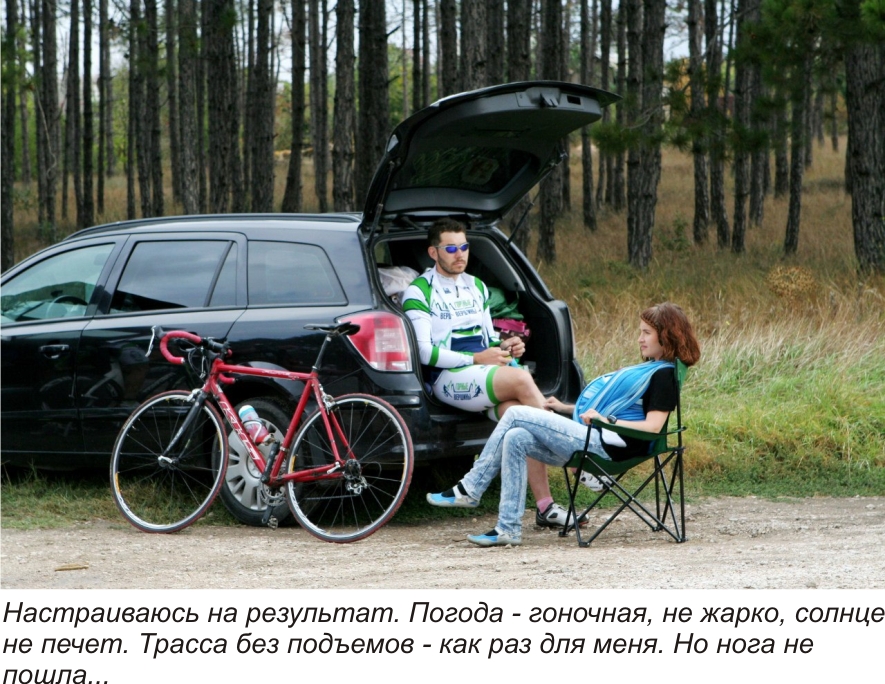 Старт. Поехал мощно, но плавно. Сместился на самый кончик седла, руль держу локтями. Кручу тяжеленькую. Но все вот как-то не поймать то чувство, когда ты реально крутишь солидную передачу и едешь быстро. Вот нету ощущения скорости. Тяжело, посадка низкая. А еду медленно. И, через минут пять-семь нарисовалось подтверждение моим опасениям грузный гонщик на разделочном шоссере догоняет и уходит вдаль. То есть он отыграл минуту со старта и привезет еще. При том, что в генерале он сзади меня. То есть далеко не силач. Но делать нечего, еду, терплю. Добавить пытаюсь, но не получается. Тогда, в 2009м в Тосно я начинал на пульсе 175, после разворота поднял до 180 и дальше плавно поднимал до максимума, выложившись на финише на 110%. Сейчас такого даже близко нет. Повышаешь темп силы начинают стремительно заканчиваться. Только под самый финиш удалось слегка приподнять скорость. И все равно я был уверен, что обгоню Бережного. Но через некоторое время, посмотрев на судейские записки, меня ждало разочарование Саше я слил полминуты. Все. Гонка закончена на минорной для меня ноте. Удалось, правда сфотографироваться и подержать за руку легендарного Джамолидина .