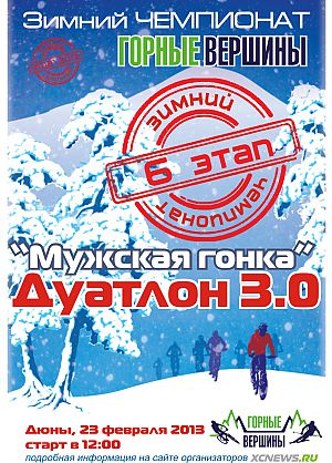 23 февраля в Дюнах (Курортный район Санкт-Петербурга) состоится Дуатлон 3.0 «Мужская гонка» 6-й этап Зимнего Чемпионата Горные Вершины.