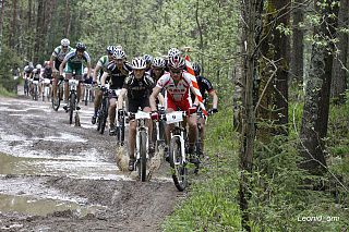 А вот в двух остальных группах не все смогли преодолеть дистанцию, которая после прошедшей в ночь с субботы на воскресенье сильной грозы, представляла собой сложный луже-грязевой трип. Но сочетание жаркой погоды и грязевых прохладных ванн довольно неплохо сказалось на самочувствии спортсменов, хотя и затруднило получение полного удовлетворения от интересной и технически разнообразной трассы. В основной группе гонщиков из 80 человек, стартовавших на 2 круга смогли проехать их лишь 63. После прохождения первого круга определилась группа лидеров в составе Ломакина Александра, Уткина Михаила, Лалина Григория и Галафеева Андрея, которые с семиминутным отрывом от остальных ушли на второй круг. Борьба на втором круге расставила всех по местам задолго до финиша. В итоге первым среди участников основной дистанции на 48 км стал Александр Ломакин, через две с небольшим минуты после него финишировал Михаил Уткин, ну а бронзовым призером стал Андрей Галафеев.