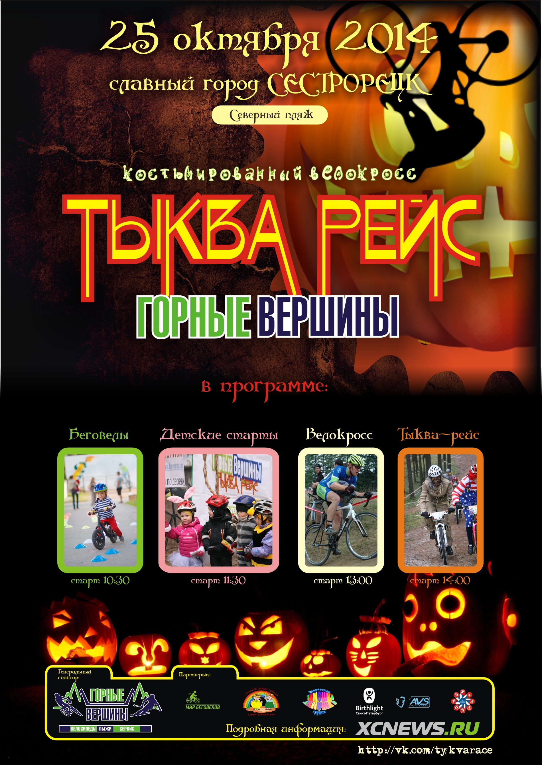 25 октября 2014 г. в г. Сестрорецк (10 км от Санкт-Петербурга), в районе пляжа «Северный» состоится ежегодное Закрытие сезона от велоклуба «ХСnews» костюмированный велокросс «Тыква Рейс 2014»!