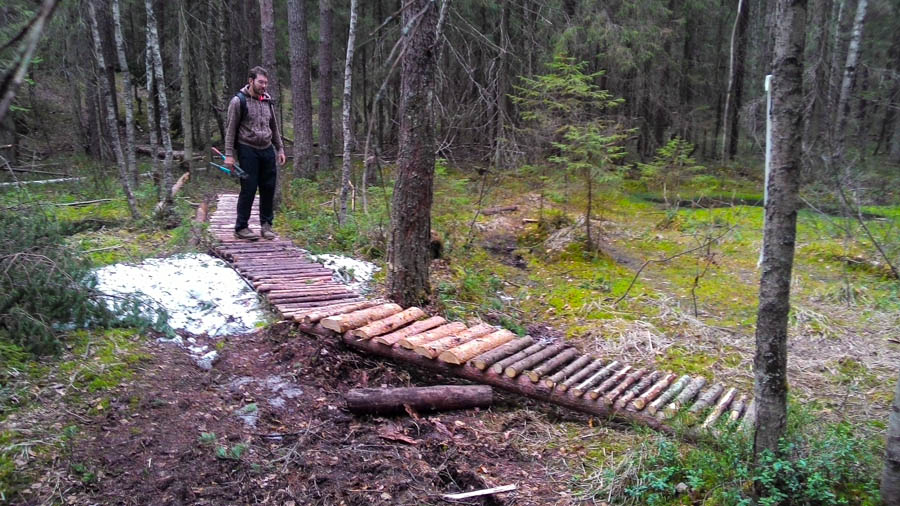 Работы на трассе Весеннего марафона XCnews идут полным ходом. За майские строительные выезды нами построено 3 новых мостика, увеличена длина гати и одного из существующих мостов.