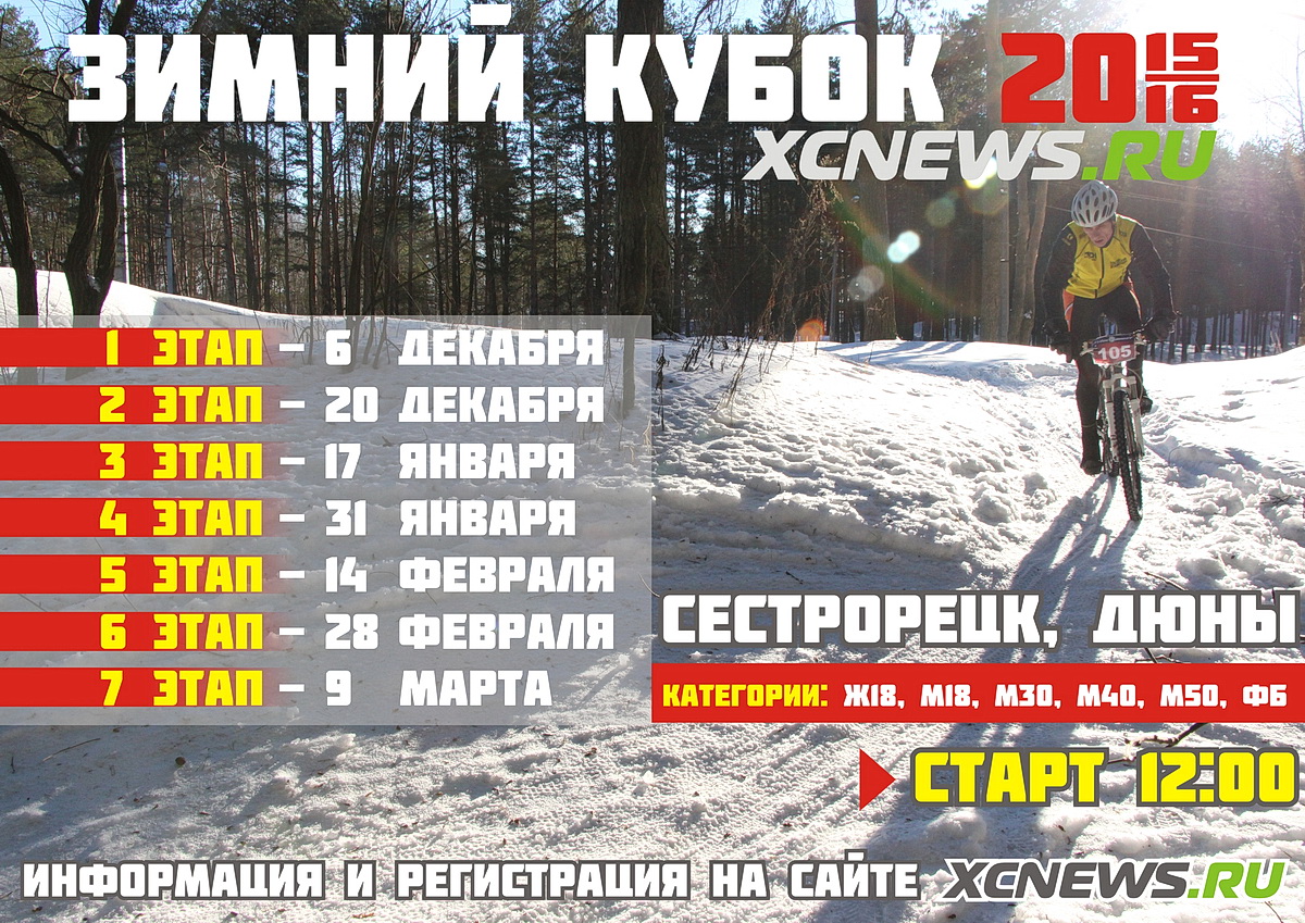 Приглашаем всех любителей маунтинбайка на нашу традиционную зимнюю серию гонок «Зимний Кубок XCNews.ru 2015-16». В этом сезоне серия состоит из 7 этапов по два на каждый зимний месяц и заключительный этап в марте.