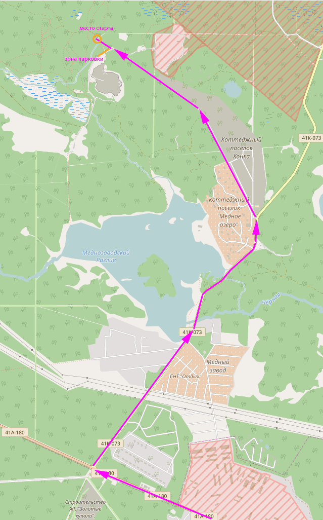 Место старта и финиша - лесная поляна у грунтовой дороги с координатами GPS: N 60.2191°, E 30.1277°. Почти до самого места старта идет хороший асфальт от поворота с шоссе на Елизаветинку после Медного озера. За 1 км от места старта асфальтовая дорога становится грунтовой. За 200 метров от старта на широкой обочине можно запарковать автомобиль. Просим участников воздержаться от проезда на автомобилях непосредственно к стартовому лагерю.