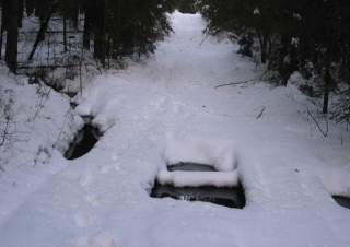- Далее по лесной дороге вдоль ручья Кроткий (периодически пересекая его по мостам) до развилки.