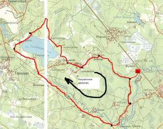 Красной маркировкой на картах обозначен частично маршрут, проходящий по лесным, грунтовым, шоссейным дорогам и тропам.