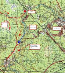 - Далее по лесной дороге (направление север, северо-восток) до высоты 54,6м.
