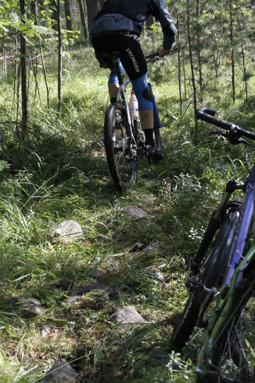 Коварные камни прикрыты зеленой травкой... И в определенный момент, когда кажется, что хуже уже не будет, все чудесным образом прекращается и опять ты едешь по ботанической дорожке.