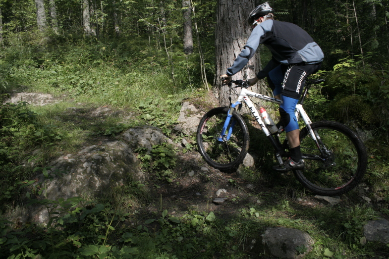 Здесь будут участки с великолепной скоростной рулежкой, которая вскоре перерастают в уворачивание от камней, а еще дальше в сложно проходимые участки (если выстегнулся, то встегнуться и поехать дальше крайне проблематично).