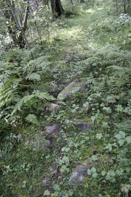 После этого "отдыха" начинается длинный подъем, начальная часть которого представленная грядой торчащих камней расположенных как нельзя не кстати... Преодолев их начинается выполаживание. И хотя уклон продолжает, ты все-таки отдахаешь.