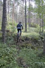 Длина апхила 1500м (+/-50м). Набор 90м. Первые 600м идет техничный синглтрек в гору с короткими выполаживаниями.