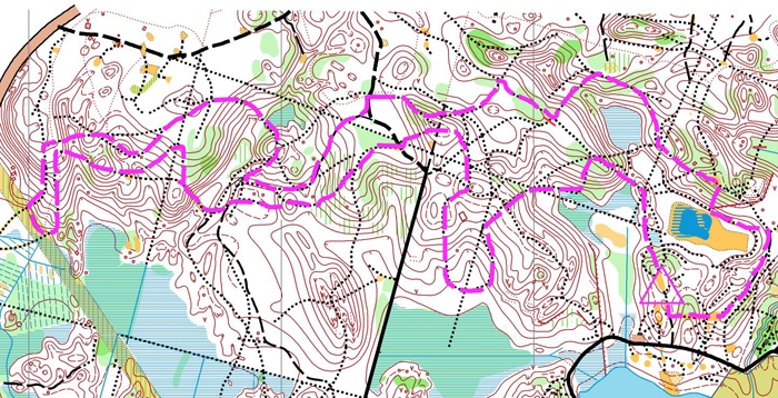 Длина круга 6 км. Круг технически несложный, но с ощутимым набором высоты. Преобладают синглтреки в чистом сосновом лесу. Большая часть круга проходит по лыжной трассе базы "Прибой".