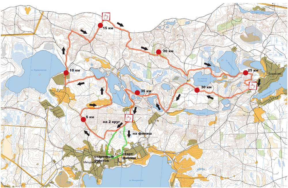 Трасса Марафона на 80 км (2 круга) и полумарафона на 40 км (1 круг), проходит по живописнейшим местам Карельского перешейка: сосновым лесам, грунтовым дорогам и каменистым тропам, включает в себя стремительные спуски и затяжные подъемы, броды, пролегает по берегам многочисленных лесных озер. Дистанция в 80 км требует от участников хорошей физической подготовки и выносливости, дистанция полумарафона в 40 км доступна участникам начального уровня.