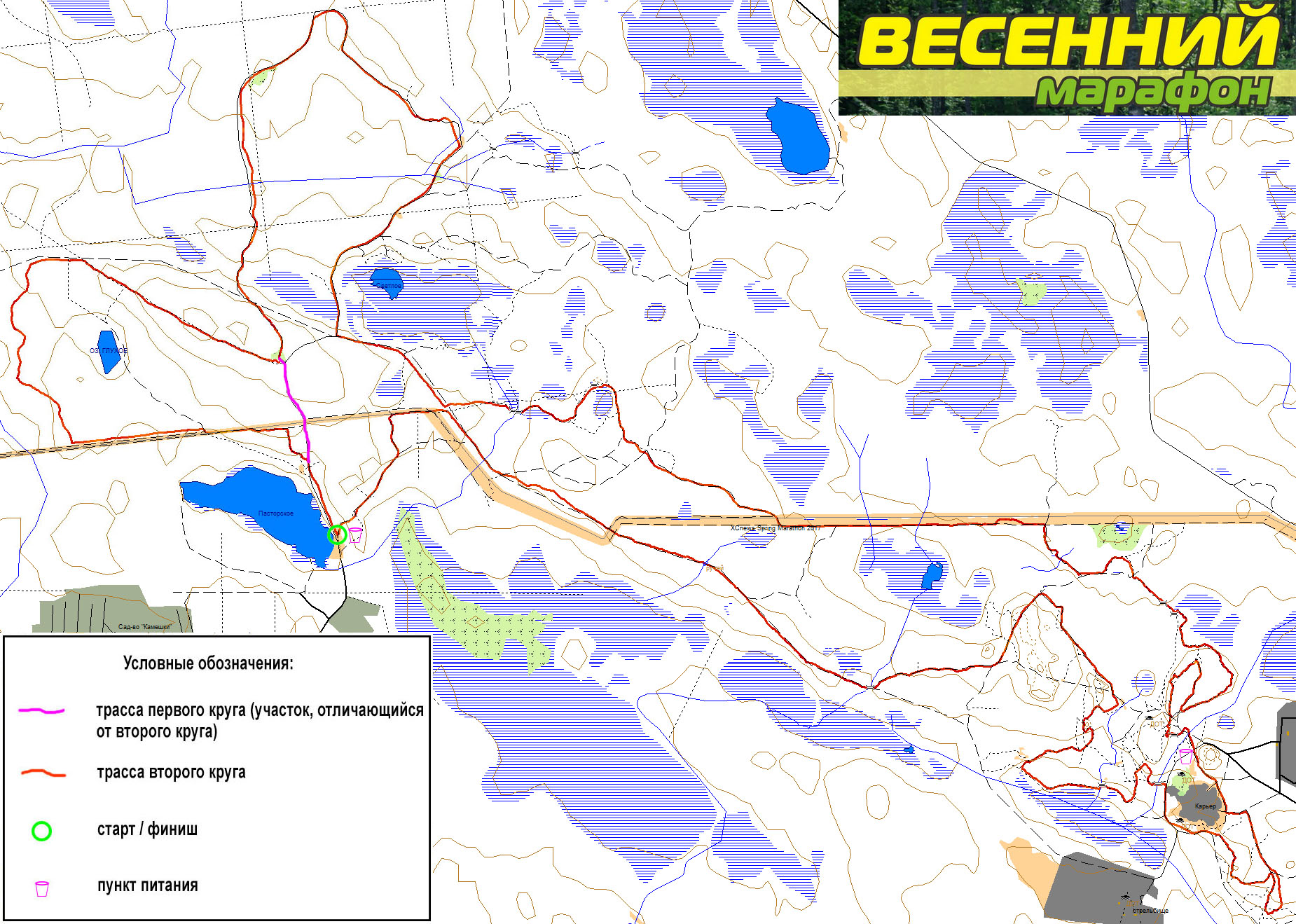 За все годы проведения Весеннего марафона, его трасса претерпевала значительные, порой даже радикальные изменения. Но дистанции последних трех лет и участниками, и нами, организаторами, признаны весьма удачными. Поэтому значительных изменений, как во все предыдущие годы, не будет. Тем не менее, это не означает, что их не будет совсем. На трассе этого года участников ждут новые трейлы в юго-восточной части дистанции. Длина первого круга - 24 км, второго - 27 км, итого дистанция полного марафона составит 51 км.