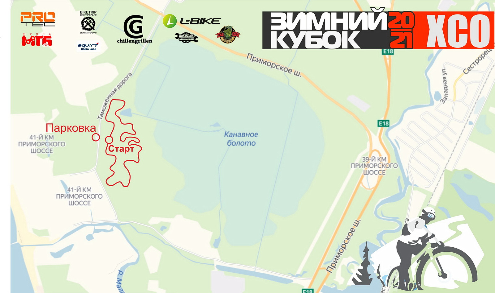 Трасса первого этапа Зимнего Кубка расположена у Таможенной дороги в Курортном районе Санкт-Петербурга. Парковка автомобилей участников — на большой асфальтированной площадке у автобусной остановки.