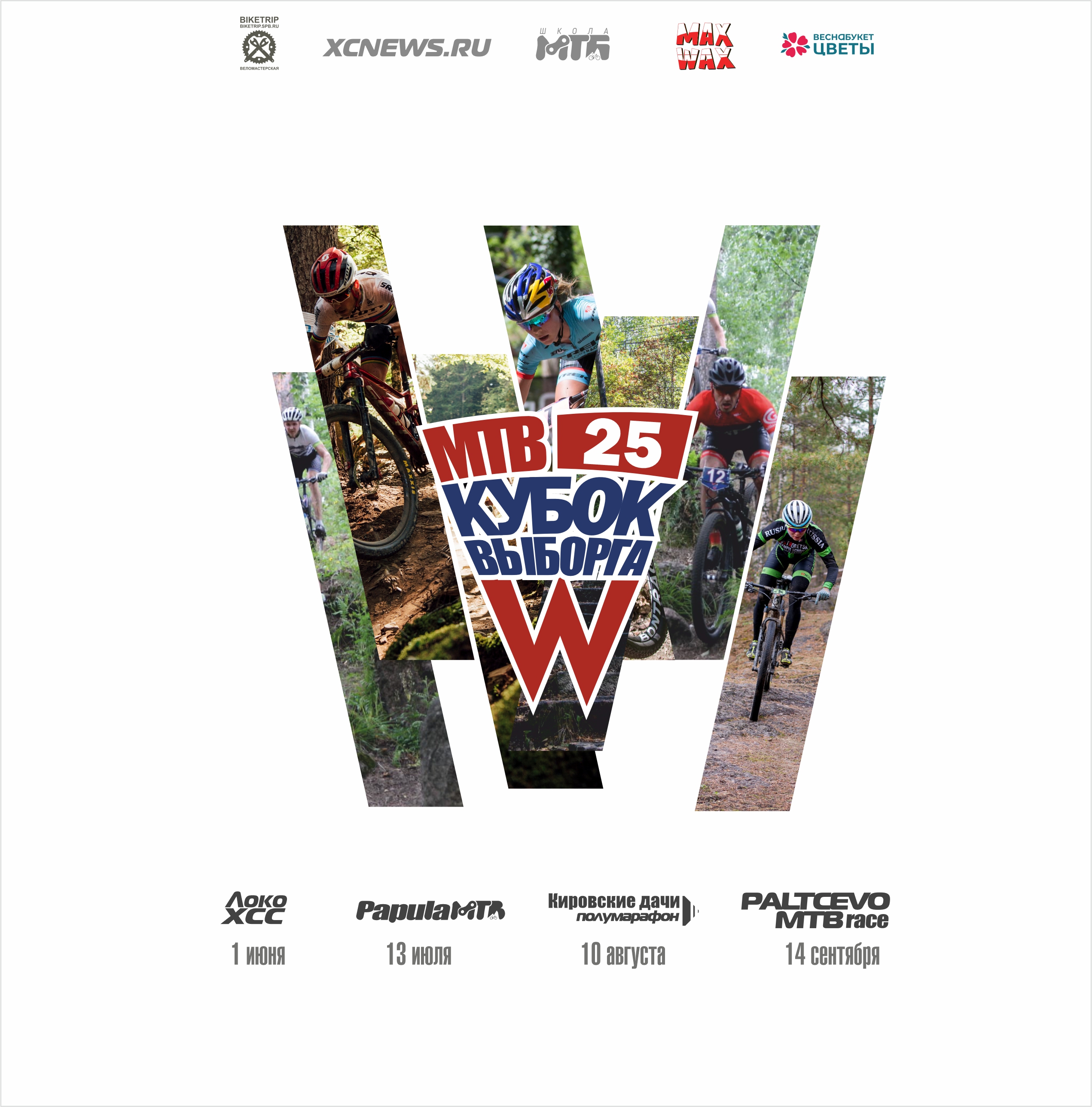 Друзья! Рады представить вам Кубок Выборга 2025! Теперь это четыре гонки в разных форматах. Открывает Кубок гонка по короткому кругу ЛокоХСС — настоящий динамичный шорт-трек с несложной трассой вокруг стадиона. Гонка проводится в рамках Всероссийского дня велосипедиста. Второй этап — легендарная гонка ХСО ПапулаМТБ — одна из самых технически изощренных в нашем регионе. Третий — классический полумарафон Кировские дачи по живописной лыжной трассе вдоль Защитной бухты. И финальный, четвертый этап — ПальцевоМТБ, полумарафон по безумно красивым скальным массивам вдоль Беличьего залива.