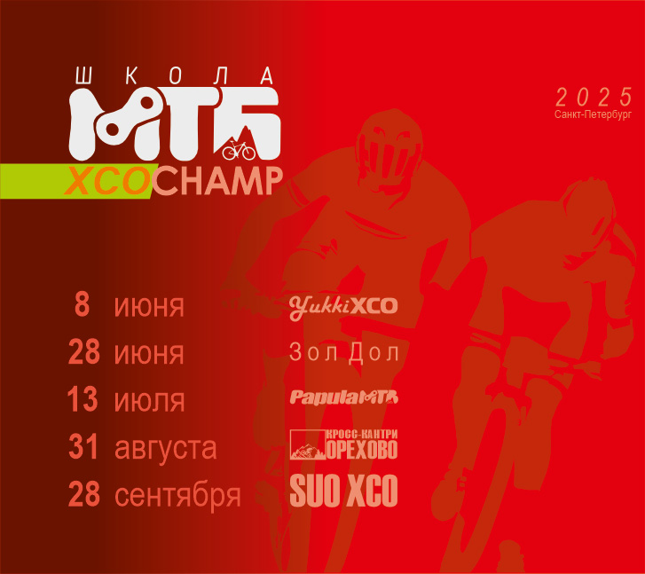XCO Champ пять этапов настящих кросскантрийных гонок. Нам удалось согласовать Юкки. Со стадионом, всей инфраструктурой и трассой уровня Чемпионата России. Также в календаре Золотая Долина знаем, многие хотели видеть там настоящее ХСО с бесконечными подъемами и техничными спусками. И нестареющая классика Папула, Орехово и Суоранда.